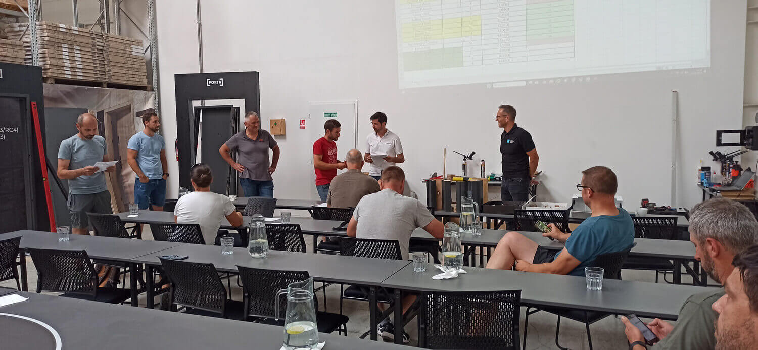 Zaměřeno na montáž obložkové zárubně k bezpečnostním dveřím Porta EXTREME. Po odborné prezentaci probíhá zkouška z montáže, po které účastníci získají certifikát o absolvování.